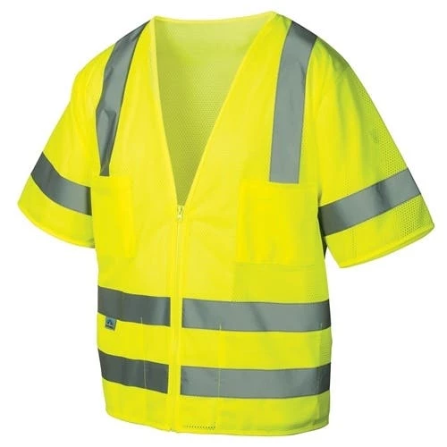 Pyramex Class 3 Hi-Vis Lime Safety Vest 8 Pocket Zipper RVZ3410